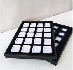 Contenitore di pietre preziose acriliche rettangolari trasparenti-bianco 18 pezzi con vassoio nero mostra di gioielli per imballaggio di scatole di gioielli all'ingrosso