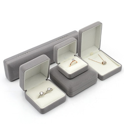 Seçin toptan özelleştirilmiş Logo takı gri kadife ambalaj kutusu takı kolye kolye yüzük vaka